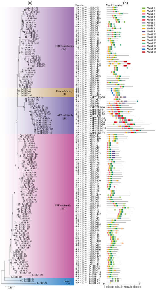 3.4. The Protein Phylogenetic Relationships and Conservation Patterns of LcAP2/ERF Transcription Factors