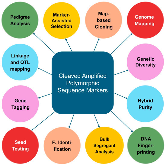 Additional CAPS markers can be designed for SNPs present in quantitative trait locus (QTL) regions [12] to aid the delimitation of the QTL region and find candidate genes. Moreover, high-throughput CAPS markers can be developed using advanced tools (given in Section 2) and integrated with other types of DNA markers to develop high-density genetic maps. Such comprehensive genetic maps facilitate the identification of key traits and enable breeders to implement MAS more effectively, ultimately enhancing crop improvement [13,14,15].