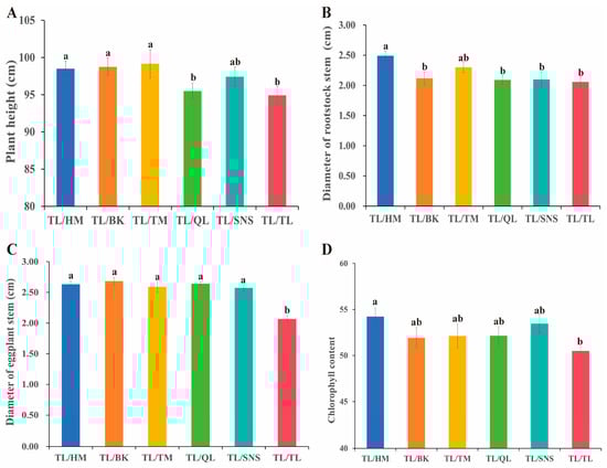 3.1. Effects of Grafting with Different Rootstocks on the Growth Traits of Eggplant