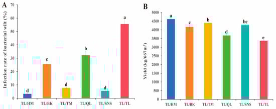 3.2. Effects of Different Rootstocks on Disease Resistance and Yield of Eggplant