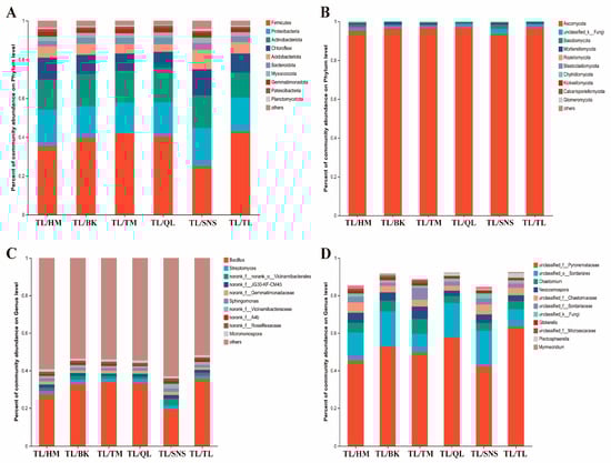 - Nilsson, R.H.; Larsson, K.H.; Taylor, A.F.; Bengtsson-Palme, J.; Jeppesen, T.S.; Schigel, D.; Kennedy, P.; Picard, K.; Glöckner, F.O.; Tedersoo, L.; et al. The UNITE database for molecular identification of fungi: Handling dark taxa and parallel taxonomic classifications. Nucleic Acids Res. 2019, 47, D259–D264. [Google Scholar] [CrossRef] [PubMed]