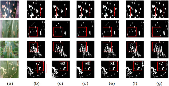 In intelligent crop disease identification based on images, leaf image segmentation is a key step [5]. To improve the accuracy and efficiency of intelligent crop disease detection, numerous scholars have conducted research and made improvements [6,7]. Numerous researchers have started using machine learning for illness spot segmentation as a result of its advancements. A crop disease detection and classification EDLFM-RPD model was created by Almasoud [6]. EDLFM-RPD locates disease characteristics by using k-means and median filtering as preprocessing. The features are then obtained by combining deep features based on inception with manually generated gray-level co-occurrence matrices. Lastly, FSVM is used for categorization. Ambarwari [7] identified plant species with an accuracy of 82.67% using RBF kernel support vector machines (SVM). Machine learning techniques can yield good segmentation results with a small sample size, but they are rather difficult to implement and require several stages of image preprocessing. Machine learning techniques used for disease detection through digital images have some issues unrelated to human visual perception. Moreover, machine learning-based segmentation algorithms are typically poor in unstructured contexts and need researchers to manually build feature extraction and classifiers, making the process more challenging. Machine learning techniques are also used to detect various seeds. Numerous methodologies exist for the identification of various torch types, including content-based image retrieval (CBIR) techniques, and random forest classifiers have been used to detect corn seeds. However, these techniques require a large amount of data to support them, which is particularly challenging in the field of agriculture, where data is often incomplete and difficult to access [8]. The rapid development of deep learning techniques provides a new way of thinking for researchers in the field of agriculture. To augment the precision and efficacy of corn disease detection, the international academic and expert community has persistently engaged in the investigation and refinement of network models, culminating in significant advancements. In their study, Wang [9] introduced an ADSNN-BO model, which is predicated on MobileNet architecture and augmented with advanced attention mechanisms, tailored for the detection and categorization of crop diseases in agricultural fields. The efficacy of this approach was substantiated by cross-validation classification experiments conducted on publicly available datasets, yielding an accuracy rate of 94.65%. Nonetheless, the precision of crop disease identification remains an area requiring additional enhancement. Wang [10] selected apple black rot images from the PlantVillage dataset to diagnose the severity of apple black rot, using a deep convolutional neural network (DCNN) for training. The empirical findings suggest that the proposed methodology obviates the need for labor-intensive feature engineering and threshold-based segmentation techniques. Utilization of the VGG-16 model for training purposes resulted in the highest overall accuracy rate of 90.4%. Sibiya et al. [11] introduced fuzzy logic decision rules to determine the severity of leaf diseases, using the index of lesion area to leaf area ratio. Joshi [12] proposed a convolutional neural network (CNN), Vir Leaf Net, for the diagnosis of Clitoria ternatea mosaic virus, initially using traditional image segmentation techniques to separate the disease from the background in images, followed by the Vir Leaf Net for disease severity assessment, achieving a diagnostic accuracy of 90.48%. Subramanian [13] investigated the use of VGG16, a densely connected CNN, for efficient classification of corn leaf diseases. This method employed Bayesian optimization for hyperparameter tuning and transfer learning. The images were sourced from the PlantVillage dataset and online resources. The assessment of the method was conducted using the performance metrics of precision, accuracy, and recall. A comparative analysis with alternative methodologies revealed that the current approach enhanced precision and concurrently reduced computational time. Nevertheless, it did not achieve comprehensive detection of all pathologies associated with corn foliage. Entuni [14] proposed an automatic identification method for corn leaf diseases using the DenseNet-201 algorithm, with images collected from the PlantVillage dataset. The recognition accuracy of the DenseNet-201 model was recorded at 95.11%, demonstrating elevated precision and robustness, outperforming prior techniques, including ResNet-50, ResNet-101, and the bag of features approach. Nonetheless, the methodology did not incorporate the analysis of other plant components for the identification of infected diseases. Akila [15] analyzed the application of deep convolutional neural networks (DCNN) in the classification of corn leaf diseases. Atila, U [16] elaborated on the use of a DONN based on feature extraction for the prediction of leaf disease types. This method could accurately predict the location of diseases within leaves and classify them, The outcomes of the study indicate that the developed method enhanced accuracy by 96.88%, rendering it appropriate for predictive processes within practical agricultural contexts, albeit it lacked the capability to forecast diseases affecting other crop species. Successively, Chen introduced a series of Deeplab architectures, namely Deeplab [17], DeeplabV2 [18] DeeplabV3 [19], and DeeplabV3+ [20], which are proficient in the efficient extraction of multi-scale semantic information from images. Ronneberger [21] proposed the U-Net model, which advanced the fully convolutional network (FCN) by integrating an encoding pathway that captures contextual information with a decoding pathway designed for accurate localization, The decoding pathway of the U-Net network facilitates the concatenation of hig