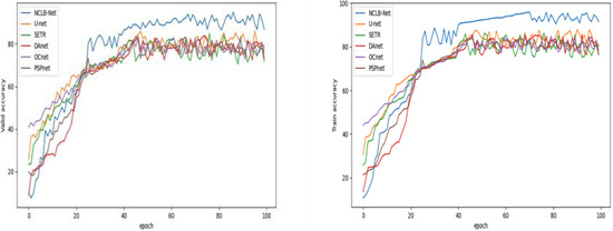 In this paper, the NCLB-Net is compared with traditional segmentation algorithms including DeeplabV3+, SETR, DAnet, OCnet, and PSPnet.