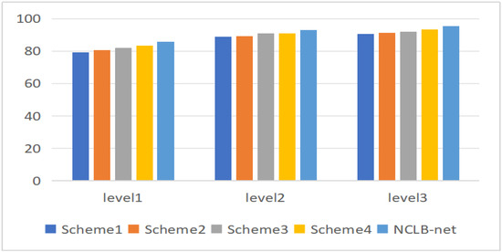 To assess the efficacy of the model, a comparative experiment was conducted on the basis of the CLB dataset classification, where the method proposed in this paper was compared with the Scheme1, Scheme2, Scheme3, and Scheme4 models, as illustrated in the table below.