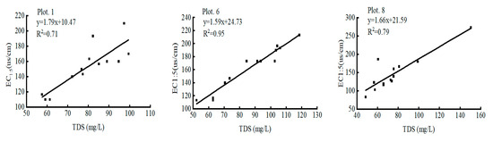 - Zhang, Z.; Hu, H.C.; Tian, F.Q.; Hu, H.P.; Yao, X.; Zhong, R.G. Soil Salt Distribution under Mulched Drip Irrigation in an Arid Area of Northwestern China. J. Arid. Environ. 2014, 104, 23–33. [Google Scholar] [CrossRef]