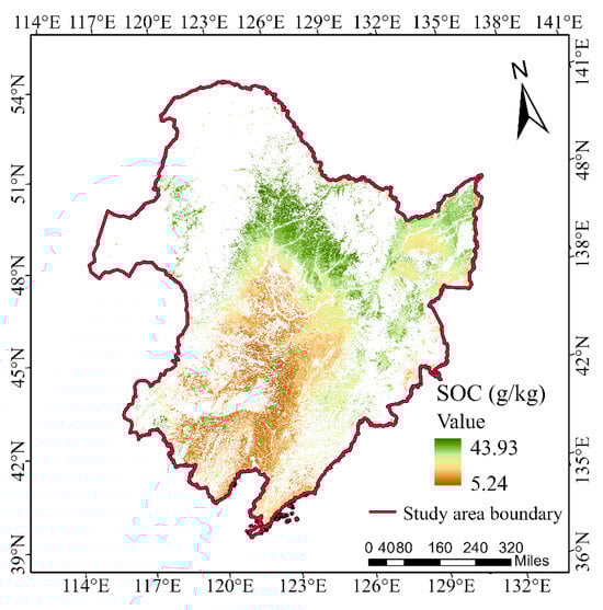 3.3. Spatial Distribution of Predicted SOC