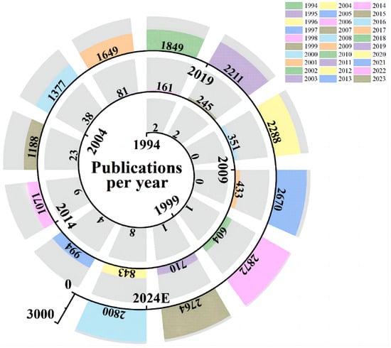 The number of publications can reflect the research heat of a certain topic to a certain extent, and the time-zone distribution of research on super-wetting materials is shown in Figure 3.