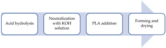 In the next stage, fertiliser mixtures 9 and 12 were produced on a larger scale (500 g). The diagram of the production process is shown in Figure 1. Deinking paper sludge was hydrolysed with 75% sulphuric acid or a mixture of concentrated sulphuric and phosphoric acid (1:1) in the ratio SF:LF 3:1, neutralised with 40% potassium hydroxide solution and enriched with poultry litter ash until the mixture reached pH 6–7. The resulting fertiliser mixture was then pelletised and dried at 105 °C.
