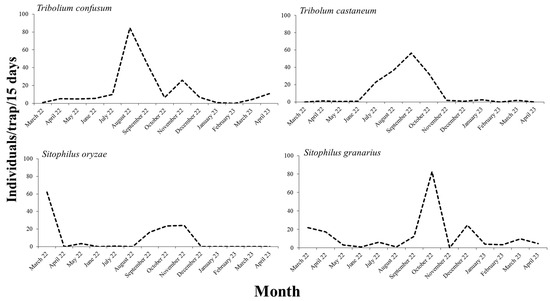 Agrafioti, P.; Lampiri, E.; Kaloudis, E.; Gourgouta, M.; Vassilakos, T.N.; Ioannidis, P.M.; Athanassiou, C.G. Spatio-Temporal Distribution of Stored Product Insects in a Feed Mill in Greece. Agronomy 2024, 14, 2812. https://doi.org/10.3390/agronomy14122812