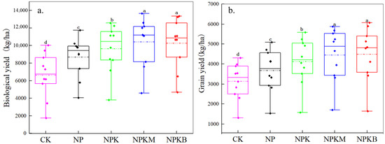 | NPKB | 4.63 ± 0.12 a | 43.75 ± 1.75 a | 31.78 ± 0.83 c | 19.83 ± 0.80 b | 48.39 ± 1.64 a | 0.64 ± 0.02 a |
