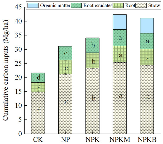 3.3.1. SOC Input Across Different Fertilization Treatments