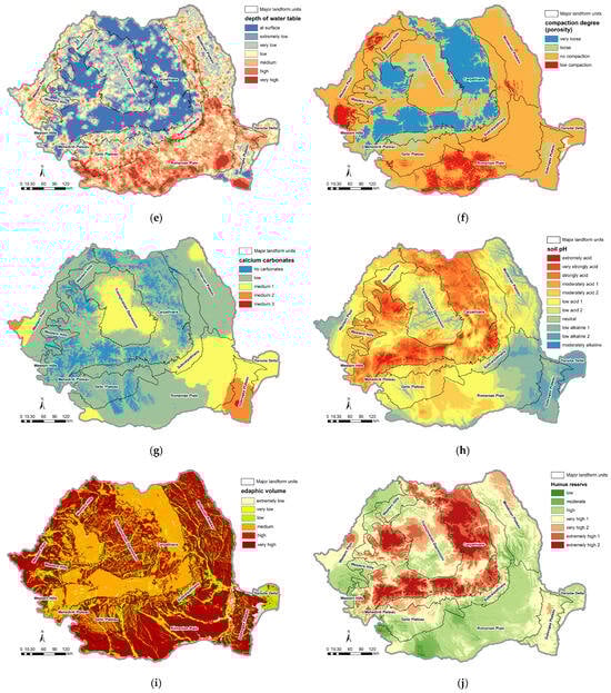 - European LUCAS 2015 point database (https://esdac.jrc.ec.europa.eu/projects/lucas, accessed on 24 November 2024) [32] spatialized for the Romanian territory by Patriche et al. [33] was used to derive soil reaction, calcium carbonates content and humus reserve;