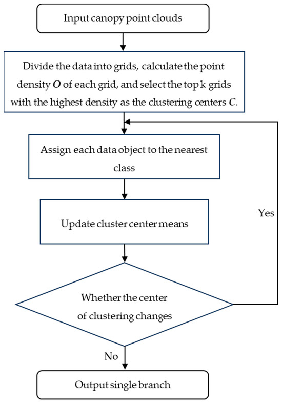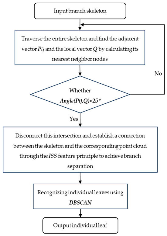 In addition to the core content of the branch segmentation algorithm that was demonstrated using pseudo-code, a flowchart was used to further express the branch segmentation execution process. The flowchart is shown in Figure 4.