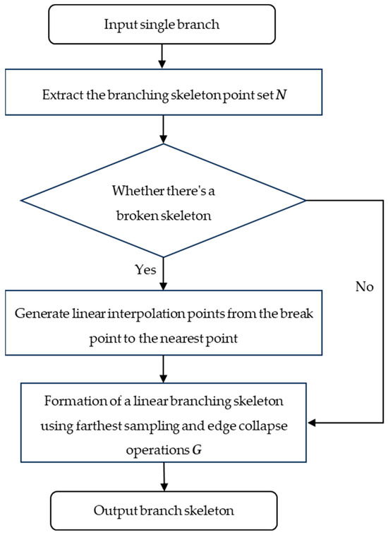 In addition to the core content of the branch skeleton extraction algorithm that was demonstrated using pseudo-code, a flowchart was used to further express the branch skeleton extraction execution process. The flowchart is shown in Figure 6.