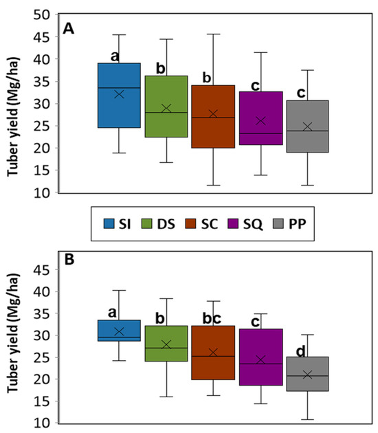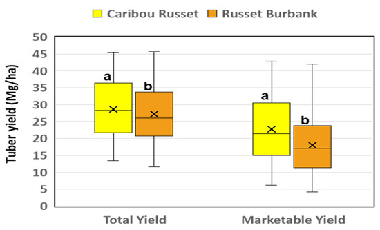 | Total Tuber Yield (Mg/ha) | Marketable Yield (Mg/ha) | |||||||