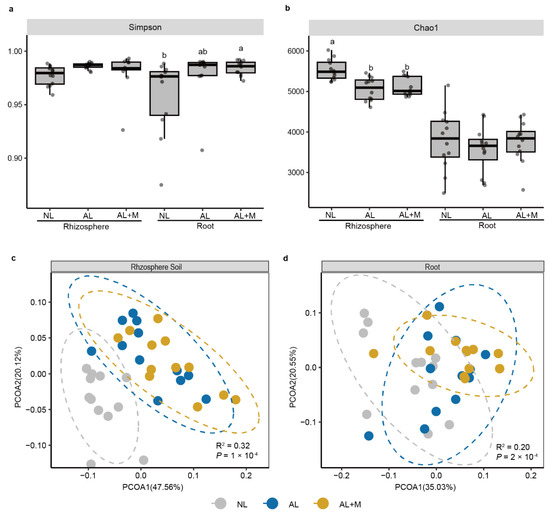 - Fitzpatrick, C.R.; Copeland, J.; Wang, P.W.; Guttman, D.S.; Kotanen, P.M.; Johnson, M.T.J. Assembly and Ecological Function of the Root Microbiome across Angiosperm Plant Species. Proc. Natl. Acad. Sci. USA 2018, 115, E1157–E1165. [Google Scholar] [CrossRef]