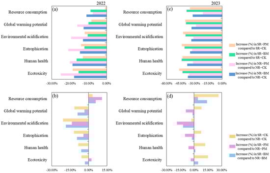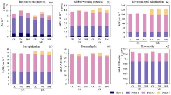 | Impact Category | Stage | SR-CK | SR-PM | SR-BM | NR-CK | NR-PM | NR-BM |