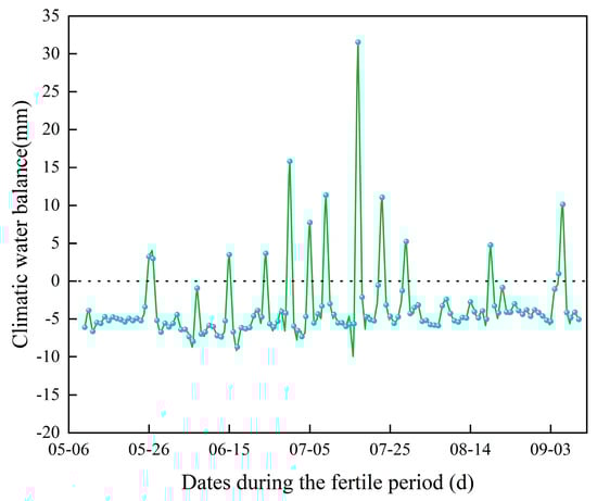 Figure 1. Climatic water balance graph of fertility period of sunflower from May to September of 2023.