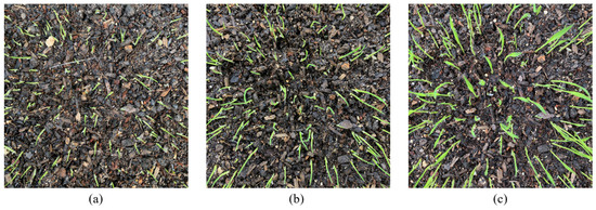 Seedling images of different stages. (a) Seedling image 48 h after sowing; (b) seedling image 56 h after sowing; (c) seedling image 64 h after sowing.