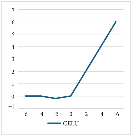 In this paper, the Gaussian Error Linear Unit (GELU) is a type of activation function that helps alleviate the gradient vanishing problem. The smooth curve of GELU and its non-zero gradient in the negative region effectively mitigate the gradient vanishing and dead neuron issues present in ReLU, thereby improving the stability and training efficiency of deep networks. GELU provides better nonlinearity, helping the model capture complex data relationships, which enhances prediction accuracy and generalization capability. GELU is smoother around zero, avoiding discontinuities. This smoothness makes the neural network more stable during parameter updates and aids the optimization process. GELU activation function is used instead of the original ReLU activation function; the expression of GELU is shown in Equation (1), and the function image is shown in Figure 6. The comprehensive analysis of Equation (1) and Figure 6 are as follows: firstly, the problem of disappearing gradient can be reduced, the function image is comparable to the ReLU function, and the GELU function has a negative region with a non-zero gradient, thus avoiding the problem of dead neurons; second, it can provide better performance, although the computation of GELU is more complex, so it is easier to converge during training; third, continuity; GELU is smoother than ReLU around 0 and does not have discontinuities as ReLU does, so it can better support the training and optimization of deep neural networks.