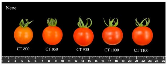 “Nene” cherry tomatoes at each CT level, ranging from 800 to 1100 °C.