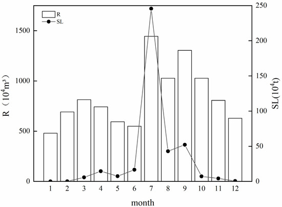 Temporal variation in monthly runoff and sediment in the Yanwachuan watershed.