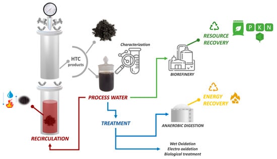 - Kambo, H.S.; Minaret, J.; Dutta, A. Process Water from the Hydrothermal Carbonization of Biomass: A Waste or a Valuable Product? Waste Biomass Valorization 2018, 9, 1181–1189. [Google Scholar] [CrossRef]