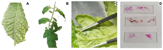 Preparation of samples for visualization of viral inclusions. (A,B) Tomato and tobacco synthosomes. (C,D) Sample extraction and mounting.