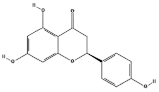 Naringenin (Figure 1) (IUPAC Name: (S)-5,7-Dihydroxy-2-(4-hydroxyphenyl)chroman-4-one) [14] is one of the main flavonoids produced by pink grapefruit [15,16], known to have antioxidant and anti-inflammatory properties [17,18] due to its free-radical scavenging ability and its affinity towards some endogenous receptors (Glucose Transporter Type 4 (GLUT4) and Peroxisome Proliferator-Activated Receptor γ (PPARγ)).