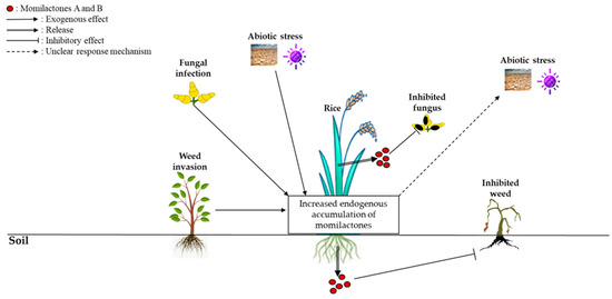 Potential role of momilactones in improving rice response to biotic and abiotic stresses.