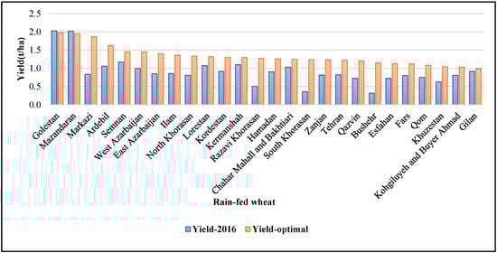 Optimal and observed 2016 regional yield distribution of rain-fed wheat in Iran.