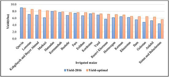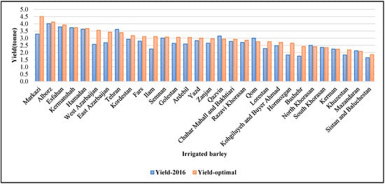 Optimal and observed 2016 regional yield distribution of irrigated barley in Iran.