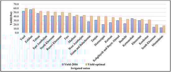 Optimal and observed 2016 regional yield distribution of rain-fed onion in Iran.
