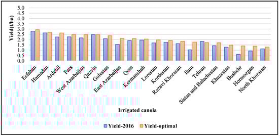 Optimal and observed 2016 regional yield distribution of irrigated canola in Iran.