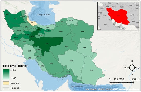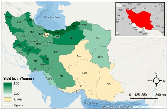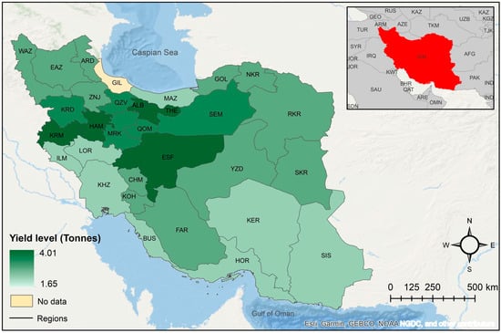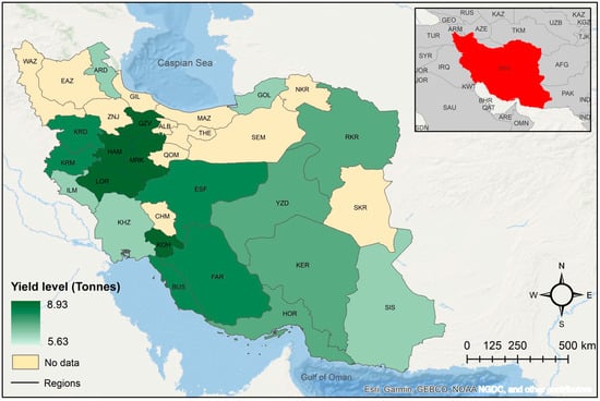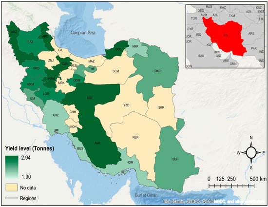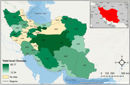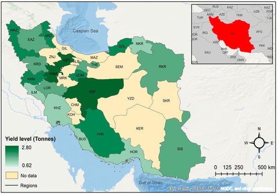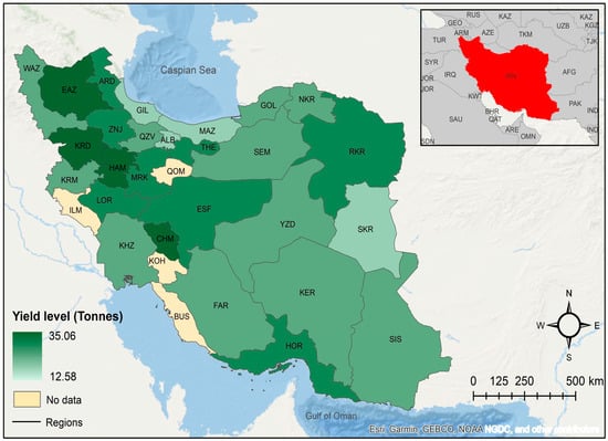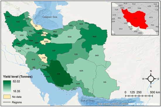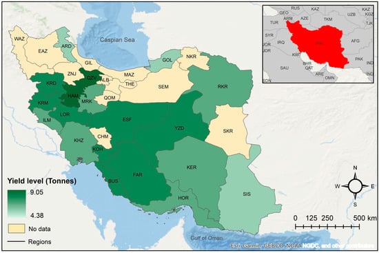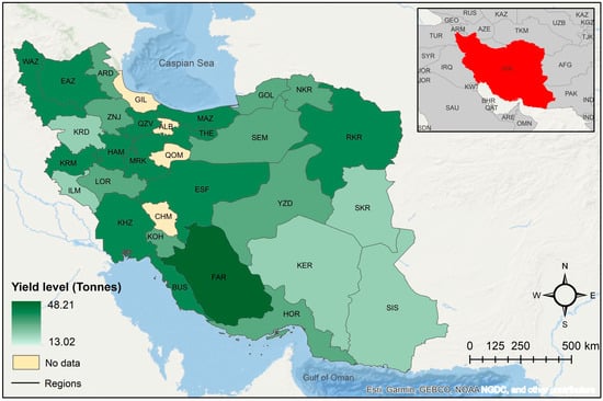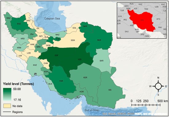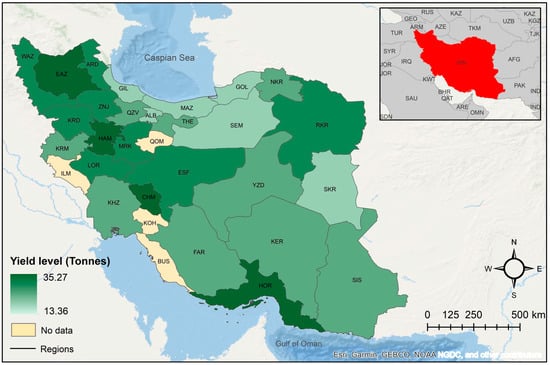 Observed 2016 regional yield distribution of irrigated barley in Iran.