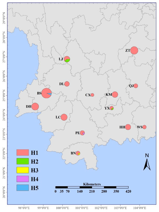 Distribution of AvrPi54 haplotypes in Yunnan Province.