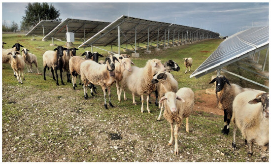 The plant is characterized by a fixed layout, with PV modules 2.2 m high, 30° tilted toward south, with corridors between PV modules rows 3.5 m spaced, in which sheep grazing for vegetation management is already a well assessed and win-win solution of integration with PV plant (Figure 1).