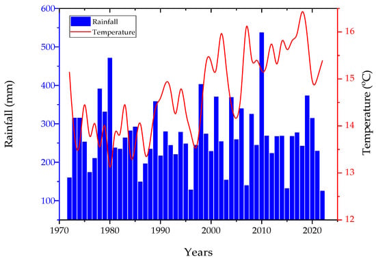 Since 1932, the Research Institute of Nyíregyháza has been collecting datasets on the precipitation and average temperatures on its arable land. The crop year of 2022 was extremely dry in Hungary, which caused serious difficulties in crop production. Figure 1 shows the total precipitation and the average temperature for the period from the beginning of March to the end of July. The amount of precipitation was only 125 mm during the growing season, which was the lowest in the last 50 years.