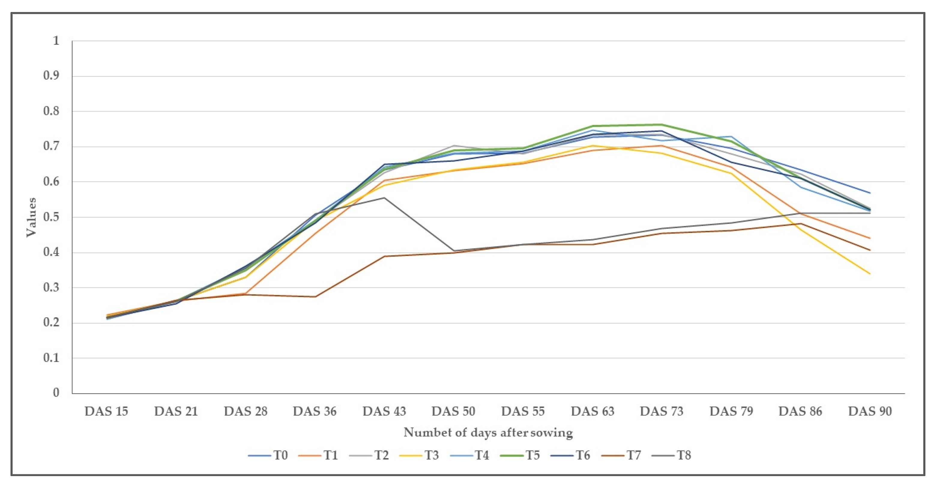 3.2. Effect of Herbicides on the Values of Normalized Difference Vegetation Index (NDVI), Green Normalized Difference Vegetation Index (GNDVI), Enhanced Normalized Difference Vegetation Index (ENDVI) Obtained from Aerially Recorded Datasets