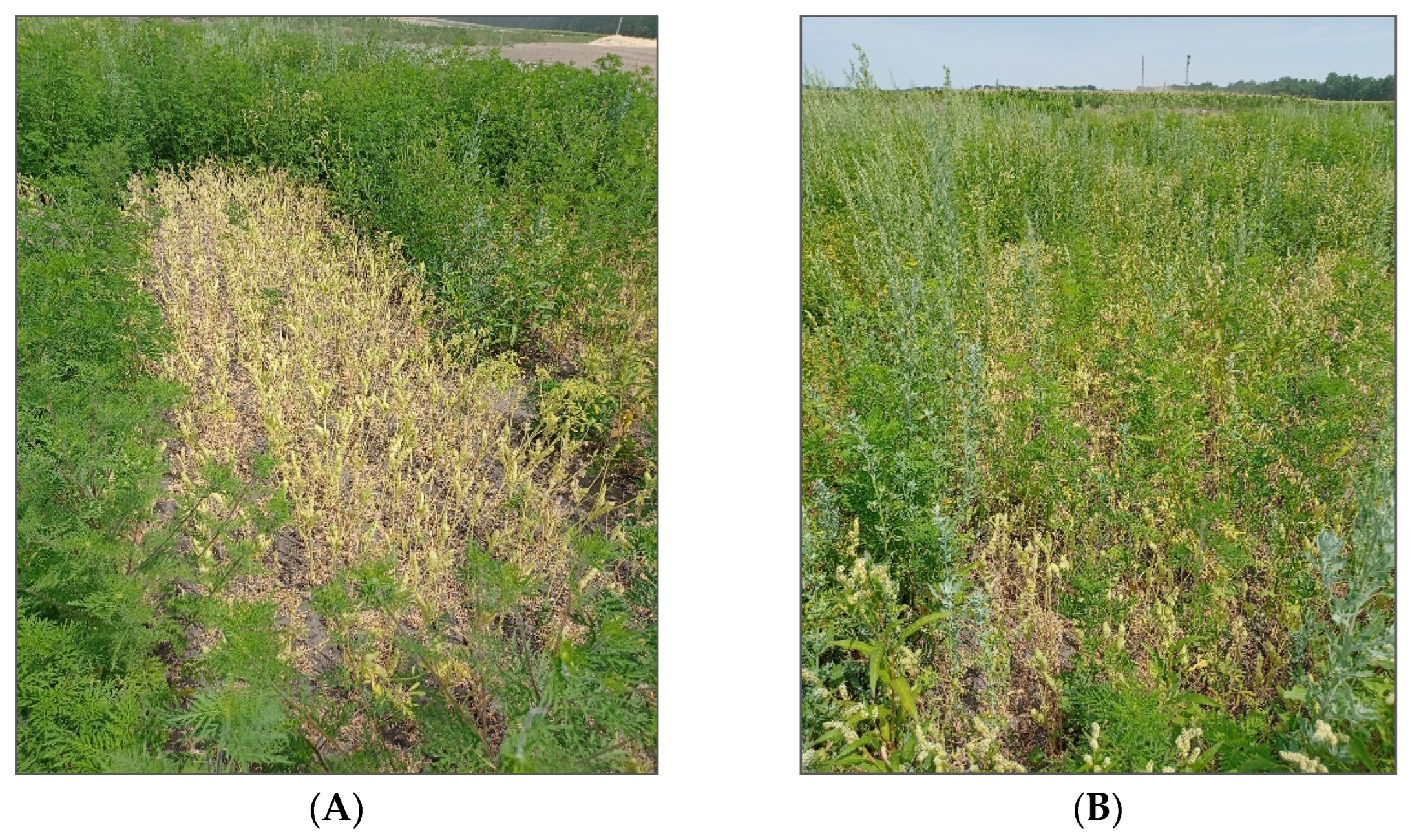 2.4. Visual Assessment of Damage Caused by Herbicides