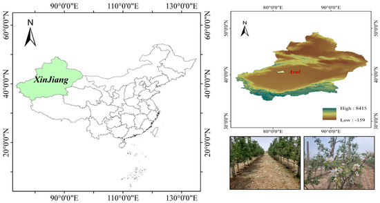 Apple occupies an important position in China’s fruit production, and its planting area and production are located at the forefront of global food production. Due to the unique geographical environmental and climatic characteristics, the Xinjiang production area is the only independent production area among the six major apple production areas in the country, and the output accounts for about 4.5% of the national total output, while South Xinjiang is the main production area in Xinjiang. Plant growth monitoring plays an important role in apple yield and quality enhancement. In southern Xinjiang, orchards have large areas and a low level of precision management of irrigation and fertilizer application. Traditional methods for measuring the water and nutrient status of orchards require a large amount of fieldwork, which is undoubtedly time-consuming and labor-intensive [25]. The development of UAV remote sensing provides a feasible way to accurately monitor the plant growth of orchards. Caruso et al. [26] used multispectral UAV map images and thermograms to monitor olive tree water status, canopy growth, and yield and concluded that there are different effects on fruit tree growth and yield under different irrigation conditions, etc. Apolo et al. [27] estimated the yield and size of citrus trees using a stick method combining UAVs and deep learning. Arakawa et al. [28] estimated the yield and size of citrus trees using a machine learning method combining UAV and UAV visible light images to estimate the yield of chestnut fruits on trees. Zhang et al. [29] used ground-space remote sensing fusion to invert the nitrogen content of orchard canopies. Fruit trees are perennials that grow and develop differently from annual crops, and the complexity of their canopies still leaves gaps in the monitoring of canopy moisture and nutrient status.