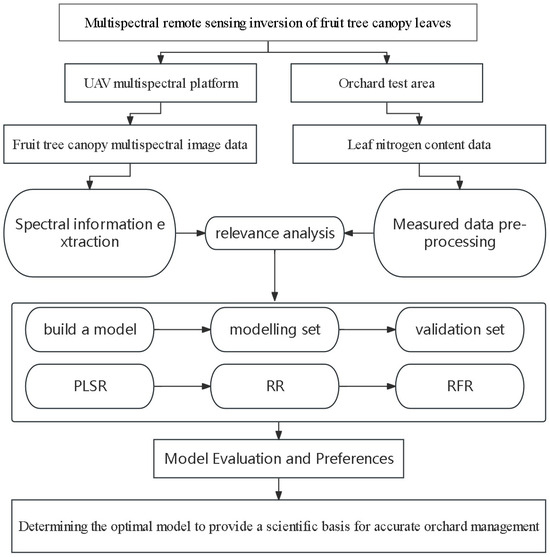 Therefore, the objective of this paper was to invert the nitrogen content of the apple tree canopy of an orchard with dwarf stocks and dense planting in southern Xinjiang using three different methods based on spectral data imaged by an unmanned aerial vehicle (UAV). The methods used include partial least squares regression (PLSR), mountain ridge regression (RR), and random forest regression (RF).