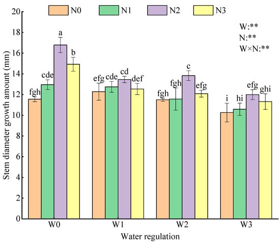 2.3.2. Plant Height and Stem Diameter Growth Amount