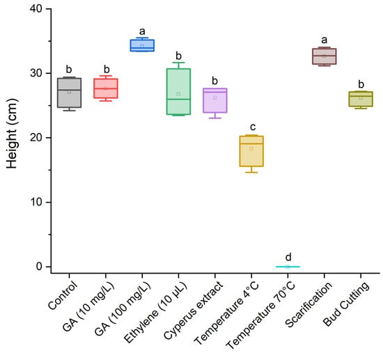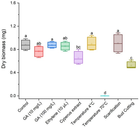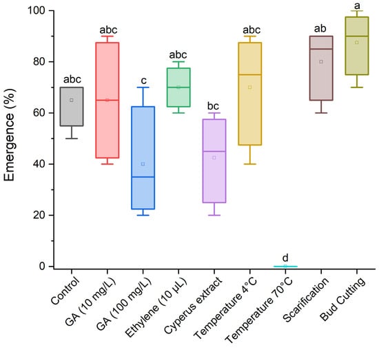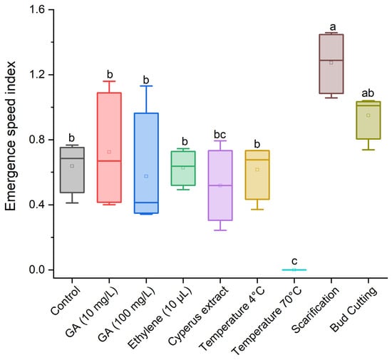 | Immersion in gibberellic acid (GA) at 10 mg L−1 |