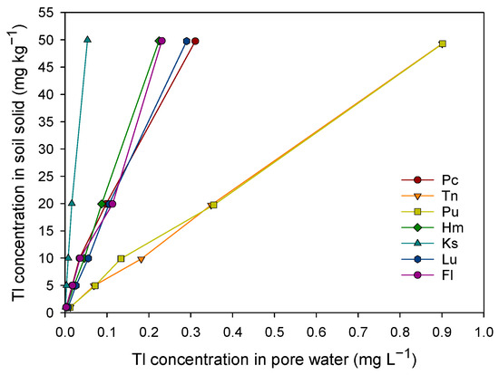 | Soil Tl Level (mg kg−1) | Pc Soil | Tn Soil | Pu Soil | Hm Soil | Ks Soil | Lu Soil | Fl Soil | |||||||
