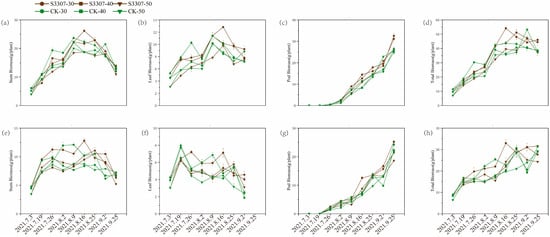 | podding period | D20 | CK | 0.20 ± 0.01 ab | 1.54 ± 0.05 ab | 58.41 ± 5.75 b | 4.67 ± 0.46 b | 0.78 ± 0.01 a | 10.9 ± 0.35 ab | 6.02 ± 0.65 b |