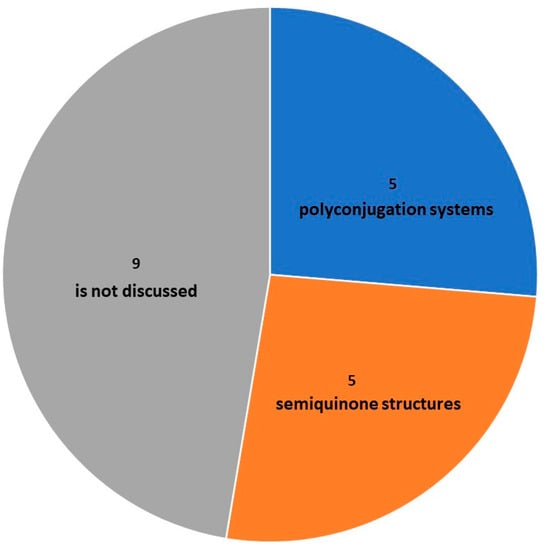 A large number of works have been devoted to the elucidation of the nature and properties of stable FRs. Many authors tend to believe that FR activity is a fundamental property of HSs [108,109]. However, to date, the question remains open as to the reasons for the birth of FRs in polysynthesized fragments of HSs. The literature data indicate a number of possible reasons, which can be reduced to two main ones: firstly, the conditions of the formation of polymer structures in the solid matrix and, secondly, the peculiarities of the electronic structure of the HS molecules.