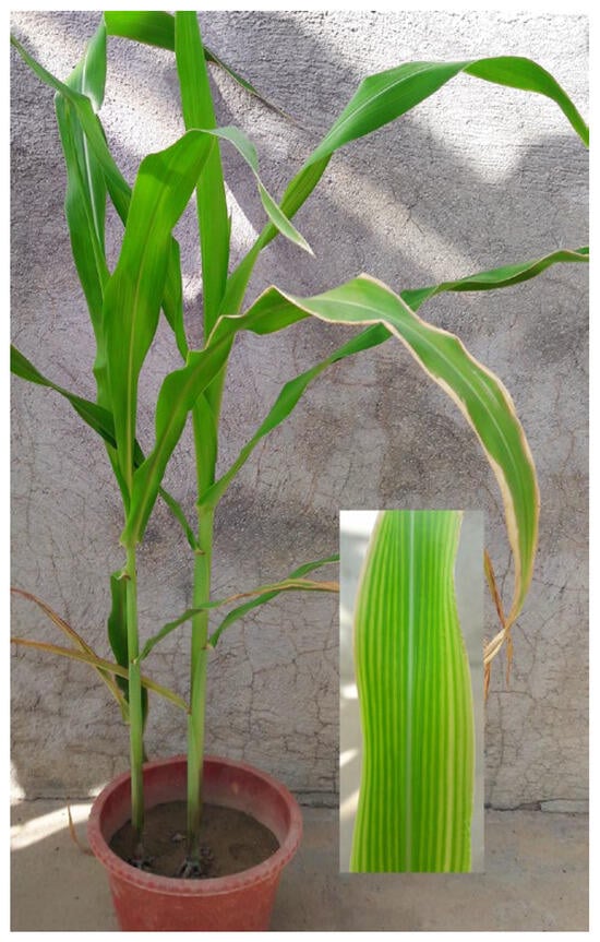Typical symptoms of boron toxicity and salinity stress in maize. Exposure to excess boron and salt resulted in yellowish strips on leaves and necrosis of the leaf margins and tips with a subsequent decline in foliage mass.