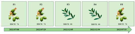 Schedule of flights based on the BBCH stage of olive trees during this experimental study.