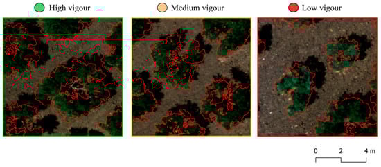 Representation of canopies in RGB visualisation for the three vigour groups.